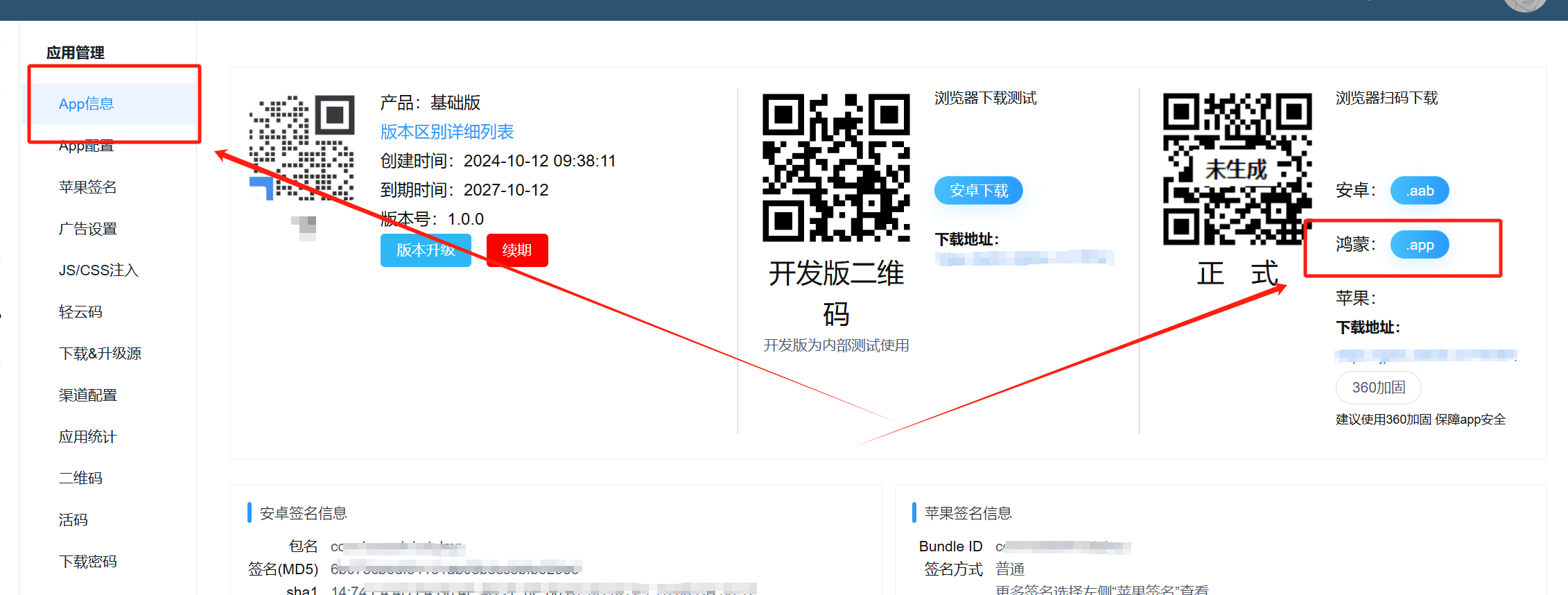 生成成功后,可在APP信息页面下载